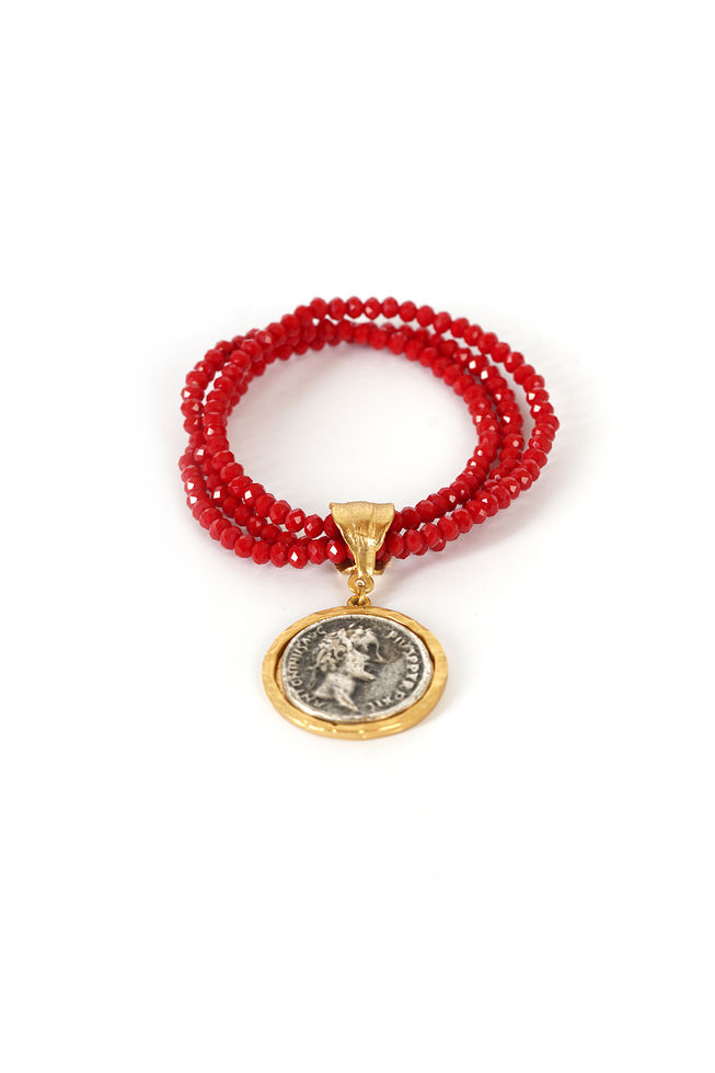 Kırmızı Kristal ve Antik Sikke Bileziği