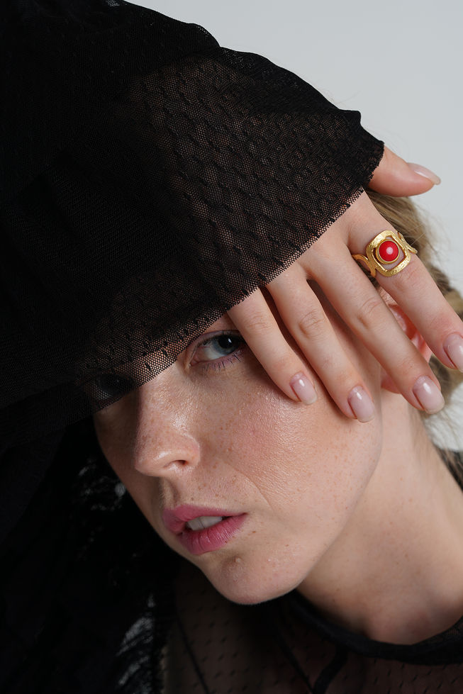 Kızıl Parıltı Yüzüğü, güçlü ve cesur tasarımıyla dikkat çeken bir aksesuardır. Pirinç üzerine altın kaplama ile üretilmiş bu yüzük, merkezinde parlak kırmızı bir taşla süslenmiştir. Yüzüğün geometrik ve modern tasarımı, kırmızı taşın enerjisiyle birleşerek cesur ve sofistike bir stil sunar. Kırmızı taş, tutkunun, enerjinin ve aşkın simgesi olarak yüzüğe anlam katar.